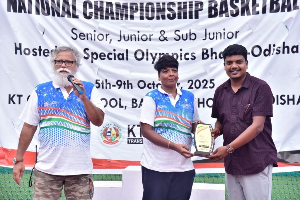 Matter “Special Olympics Bharat – Odisha hosted the Basketball National Championship at KT Global School, Barunei, Khordha from 5th to 9th October 2025. Nearly 350 athletes, partners, coaches, escorts and officials from 17 states participated in the event. It was supported by the Department of Sports & Youth Services, Government of Odisha. Ms. Sonali Chand, OAS, Official on Special Duty of the Department was one of the Guests who gave away medals and certificates to the athletes and partners who secured the 1st, 2nd and 3rd positions. The other guest was Mr. Dillip Kumar Hial, District Social Security Officer, SSEPD Department, Government of Odisha, Khordha. The Chief Guest of the Opening Ceremony was, retired Col. (Dr.) Kedarnath Dash who unfurled the State Flag, took the guard of honour in the march past and declared the games open.”